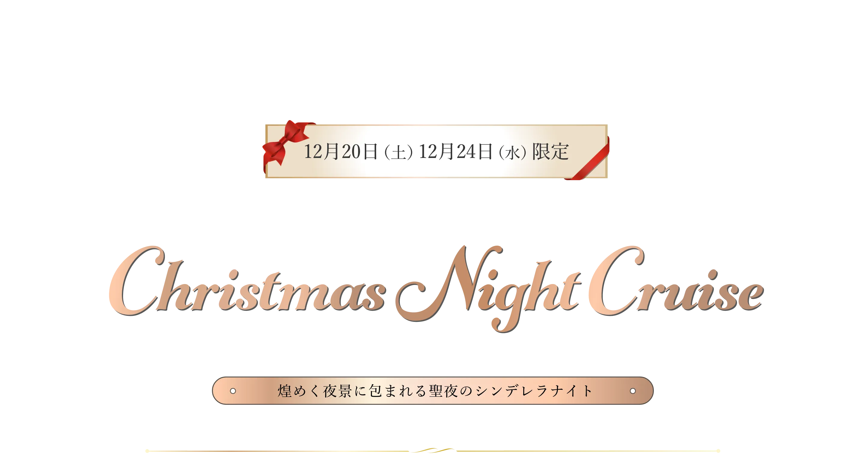 ※運航状況により、ランチクルーズ12:00〜14:10、アフタヌーンクルーズ15:10~16:00、サンセットクルーズ16:30~18:30、ディナークルーズ19:10~21:40、となる場合がございます。